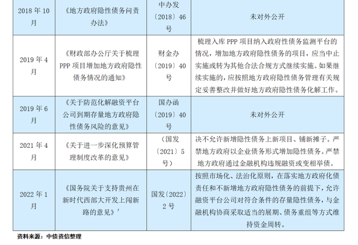 近年来地方政府违法违规举债增加隐性债务的问题屡禁不止,例如通过地方平台发行债券、非标借款、银行贷款等方式进行融资,将资金用于本应由财政预算安排支出的公益性项目建设,造成政府隐性债务的增加。2022年5月18日,财政部发布《关于地方政府隐性债务问责典型案例的通报》,集中通报河南、湖南、贵州等地城投公司八起地方政府隐性债务问责典型案例,涉及新增隐性债务、隐性债务化解不实等行为,这也是财政部自2018年11月之后,再次在其网站上对违规举债案例进行披露,体现出继续从严管控隐性债务的坚决态度。