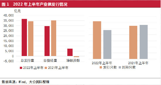 整体来看,2022年上半年,产业债净融资额同比大幅增长,综合融资成本有所下降。