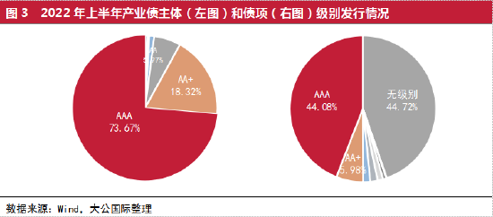 从产业债发行的债项级别分布来看,也主要集中在高信用等级的债项。