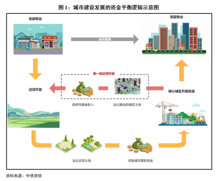 城市发展的过程是一个不断建设、更新、改造的自我生长过程。随着经济活动和社会活动不断增加,城市需要集约化空间,增强资源聚集效益和规模经济优势。在这一过程中,城市旧有物业可能已经难以继续承载相应的经济活动,需要政府通过拆迁与改造旧有物业,完成城市更新,实现城市结构与功能的物质建设性置换、功能性置换,使城市发展能够承载相应的经济活动。在这一过程中,逐渐形成了一套城市建设资金平衡模式。