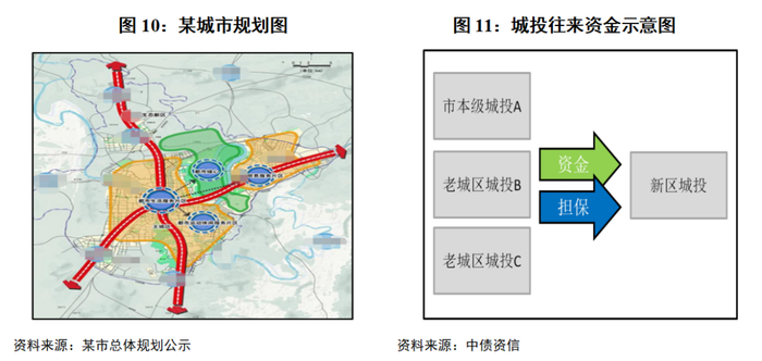 分析城市规划能够有助于了解区域内各城投企业的区域市场地位及城市建设资金流向,帮助投资人把握区域城投企业流动性风险传导路径。城市规划决定了城市发展重点,资金将主要流向重点发展区域,该区域城投企业可获得大量区域内其他城投平台往来资金和担保增信支持;其他区域城投企业则有可能成为融资抓手,协助重点发展区域的城投企业进行资金周转。因此,在对区域内城投企业进行投资选择时,需要结合地区城市规划推进阶段进行通盘考虑,不能仅关注个体城投企业单一时点的信用风险表现。通过城市规划发展时序、发展主轴可分析城市建设资金去向,从而了解各家城投主体的区域市场地位及区域城投主体流动性风险传导路径。