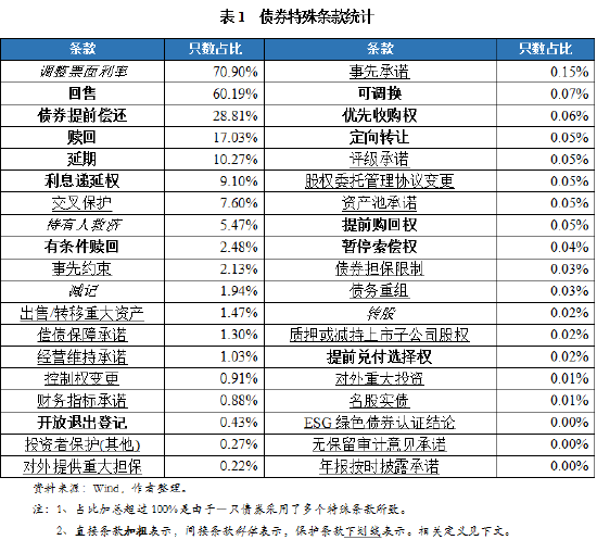 三是关注重点领域,谨防特殊条款债券与行业风险共振。金融业、基础设施建设、房地产领域作为债券市场组成的重要部分,其风险控制管理对债券市场的影响很大,更需注重债券特殊条款带来的风险。具体而言,金融行业及部分央企需要关注混合资本工具的实质补充资本的作用,关注其权益的质量,有的混合资本工具虽然未被认定为负债,但是因为部分特殊条款的存在而坐实了明确的赎回预期,从而导致其在一定程度上加大了发行人的偿付压力,造成了资本充足的虚高;基础设施建设行业发行债券不论是为了借新还旧、还是项目建设,都应该维护预算的刚性,落实偿债来源,而不是利用特殊条款为隐性债务腾挪空间;特别是房地产行业作为资金使用期限与项目进度高度匹配的行业,大肆滥用回售条款,主观是为了增加财务弹性,客观上增加了资金错配的风险,增加了偿债压力的不确定性,自2021年下半年不断爆出的房企违约固然离不开行业下行周期的影响,但是债务上的激进举措也早已深埋祸根。
