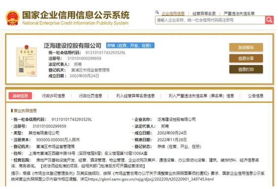 11月30日,工商信息显示,泛海建设控股有限公司股东变更,融创房地产集团有限公司持股比例从100%下降至10.322%;新增股东2个为中信信托有限责任公司、芜湖华融资本创誉投资中心(有限合伙),分别持股64.678%、25%。要知道,泛海建设拥有融创压箱底的两大优质项目:北京泛海国际项目1号地块和上海董家渡项目,两个项目加起来货值数百亿。
