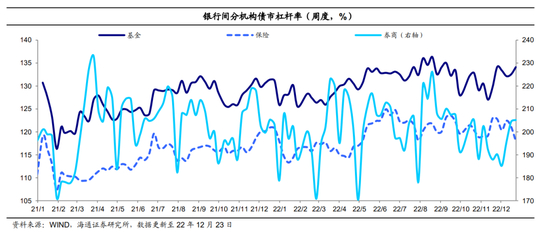 基金和券商的债市杠杆率(环比上行)。