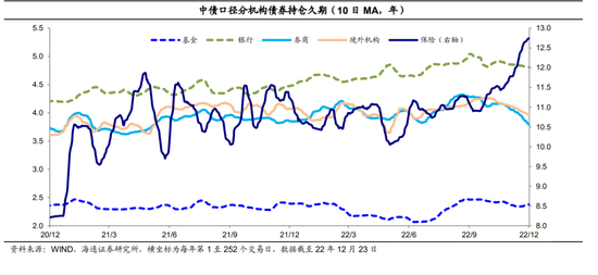 中债口径保险、券商和境外机构的债券持仓久期。