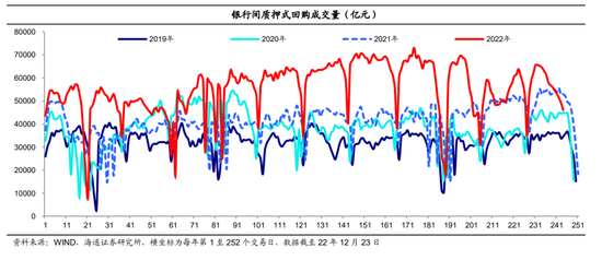 (5)质押式回购成交量&隔夜占比均继续下降。资金面临跨年,质押式回购成交量下降、周均值环比下降近8300亿元至5.08万亿元,周度隔夜回购成交量占比环比下行2.6个百分点至83%。