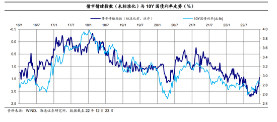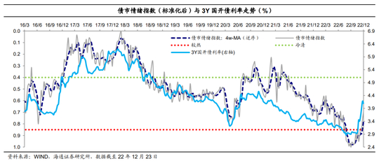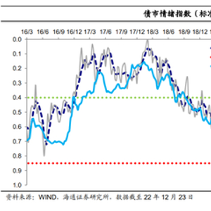 (1)上周(12月19日至12月23日,全文均为此时间区间)单周债市情绪指数略继续回落(主要是银行间杠杆率继续下降、长债超长债换手率降温至近三年低位)、为今年7月15日当周以来新低,平滑后的债市情绪指数(4周-MA)下行、为今年8月中旬以来新低(我们的数据是2016年以来)。