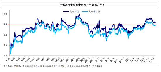 中长期纯债型基金久期(中位数)/中债口径基金和银行的债券持仓久期。