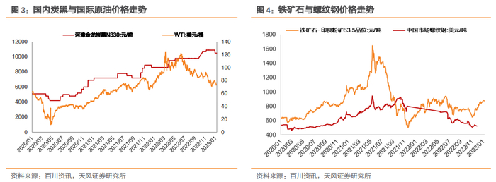 基础工业大宗产品价格走势:原油、炭黑、铁矿石、钢铁