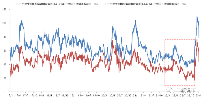 图:资产荒下信用债利差快速压缩,年底理财赎回冲击下利差迅速拉升