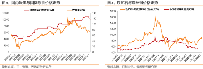 基础工业大宗产品价格走势:原油、炭黑、铁矿石、钢铁