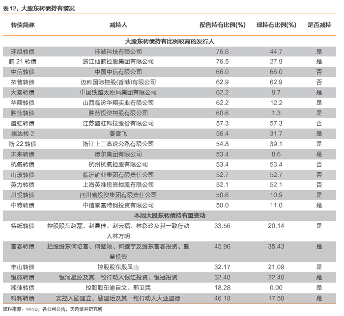 本周发布转债减持公告的公司:特纸转债、富春转债、丰山转债、银微转债、湘佳转债、科利转债。