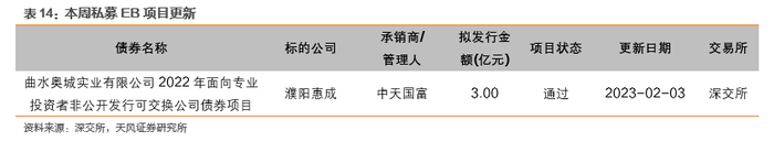上周私募EB项目进度更新如下表所示: