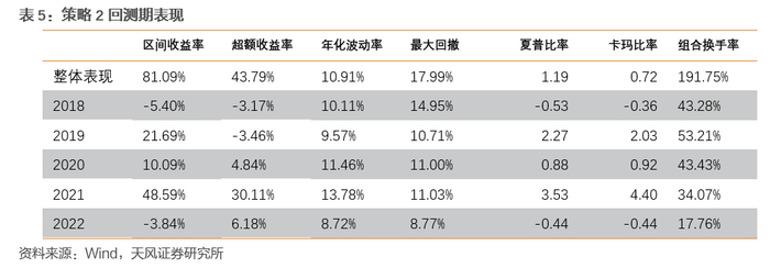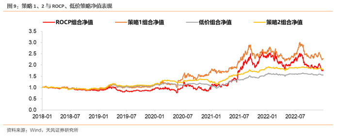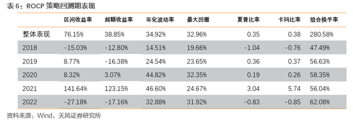 从结果中可以看到,新构建的模型明显优于作为对照的ROCP、纯低策略,并且一定程度保留了对照模型的特点。策略1收益率明显优于一般溢价率均衡策略,但相应的年化波动率和最大回撤均明显抬升,具有“高风险、高收益”的特征;策略2的收益逊色于一般溢价率均衡模型,但有更低的波动率和回撤,尤其是在2022年转债市场整体表现不佳的情况下仅有8%的回撤水平,收益水平跑赢中证转债和月度对照组。