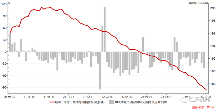 图2:二手房挂牌价格与30大中城市商品房成交同比