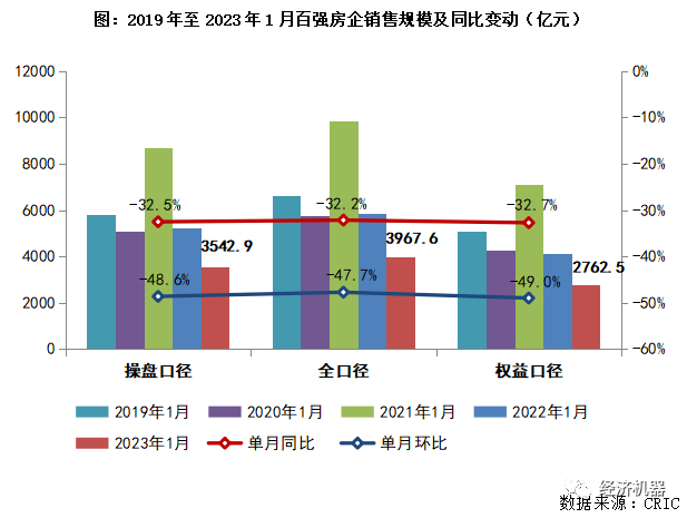 本周,克尔瑞公布了2023年1月份百强房地产企业销售情况。数据显示,1月,Top100房企仅实现销售操盘金额3542.9亿元,同比去年1月份降低32.5%,环比去年12月份销售金额降低48.6%。Top10房企中,国企开发商占据了7席。