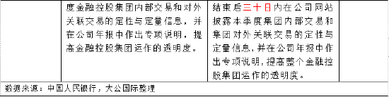 大公国际认为,《办法》明确了以董事会承担最终责任为核心特征的关联交易的管理架构,并通过设置限额对关联交易进行量化管理,有利于提升金融控股公司的风险管理和内部控制水平。