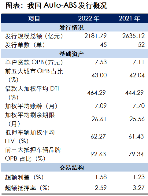 从入池资产的分散性来看,Auto-ABS单户贷款平均OPB在6~8万元之间,借款人前五大城市OPB占比在45.00%左右。2022年,单户贷款平均OPB为7.53万元,借款人前五大城市OPB占比为43.00%,较上年末变化不大,基础资产分散性依然很好。