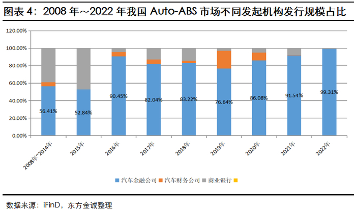汽车金融公司和汽车财务公司为Auto-ABS产品的主要发起机构,发起机构集中度较高;2022年,无新的发起机构进入