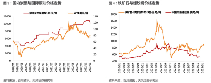 基础工业大宗产品价格走势:原油、炭黑、铁矿石、钢铁