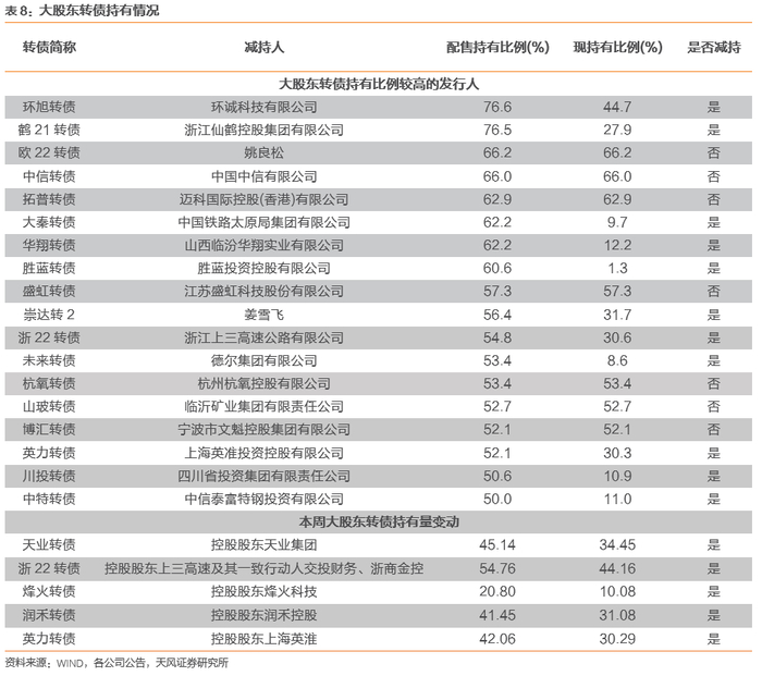 重要股东转债减持情况