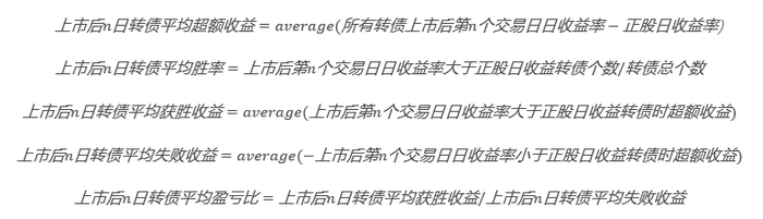 转债转股期前整体相对正股有超额收益:我们选用了以下指标分析了A评级以上所有转债上市后的100个交易日内(排除上市首日)的表现,这些指标的计算方法类推到后文其他指标: