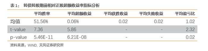 (1)整体上来看,转股期前转债表现要优于正股,胜率显著高于50%,超额收益显著高于0,随着转股期临近,相对正股的超额收益、胜率均不断衰减。