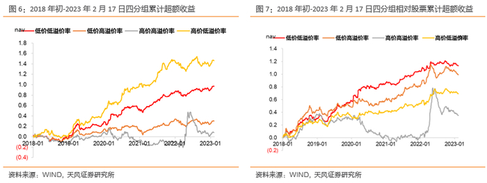“双低”转债(低价低溢价率)虽然整体收益不及高价低溢价率组合,但是从相对正股性价比的角度来看,在胜率、平均超额收益、盈亏比等方面,“双低”组合均全面占优。因此整体上看,“双低”转债是四个组别中性价比较高的选择。