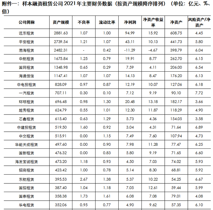 1.严监管、疫情反复导致行业资产增速持续下降,资本实力和股东背景较强的融资租赁公司有望在业务结构调整中实现量价回升,中小型租赁公司面临业务持续收缩风险