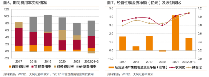 2022年前三季度公司销售费用率0.94%,同比增长0.54pct;管理费用率3.48%,同比增长0.45pct;财务费用率-0.53%,同比减少1.60pct;研发费用率4.36%,同比增长0.64pct。销售费用增加主要系咨询费增加所致。