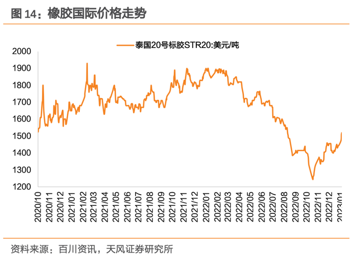 橡胶:后市预测:下游轮胎厂开工满负荷,整体库存较低,外销订单较好,但对原料天胶采购积极性较差,下游需求对天胶提振较弱,天胶行情仍处于低迷状态,预计近日市场价格在11500-11800元/吨区间震荡。(百川盈孚)