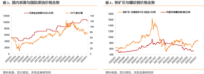 基础工业大宗产品价格走势:原油、炭黑、铁矿石、钢铁