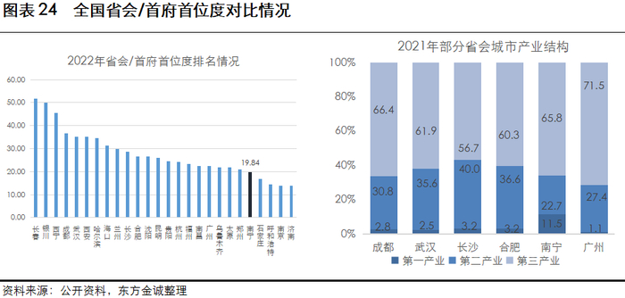 从全国省会/首府首位度对比情况来看,南宁市排名靠后,其后几名石家庄、呼和浩特、南京、济南均不是所在省份经济第一的城市。南宁市强首府战略仍任重道远,南宁市吸收自治区内资源打造强首府的进程预计中长期内仍将持续,南宁将持续得到自治区内各类资源的倾斜。