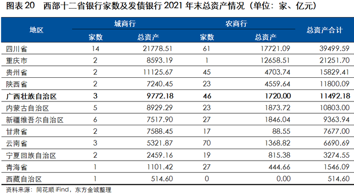 广西金融资源相对有限,对三大城商行依赖较大,对区外资金利用不足;中小银行发展专项债券发行使得广西县域城投公司可获得的金融资源将有所增加