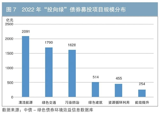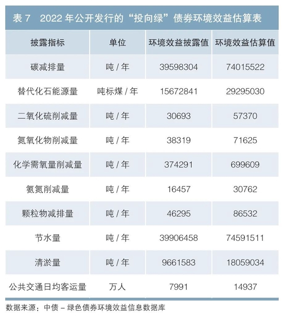 假设公开发行的“投向绿”债券中未披露环境效益信息债券的平均单位资金环境效益与已披露债券一致,根据已披露的绿债环境效益数据估算11,2022年公开发行的绿债资金预计每年可支持减排二氧化碳约7402万吨,节约标准煤2930万吨,减排二氧化硫5.7万吨,减排氮氧化物7.2万吨,为我国绿色发展起到了良好的支持作用(见表7)。