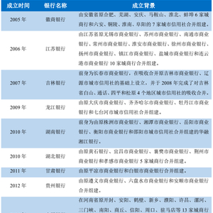 一是由多家城商行或城市信用社合并组建,这也是最常见的一种方式,例如徽商银行、江苏银行、龙江银行以及新成立的四川银行和山西银行等。