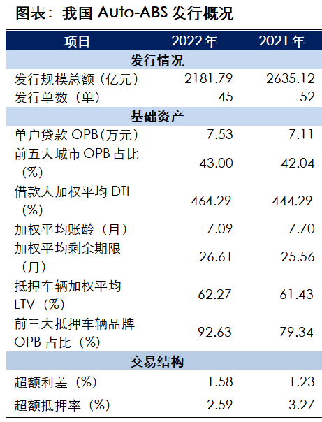 从入池资产的分散性来看,Auto-ABS单户贷款平均OPB在6~8万元之间,借款人前五大城市OPB占比在45.00%左右。2022年,单户贷款平均OPB为7.53万元,借款人前五大城市OPB占比为43.00%,较上年末变化不大,基础资产分散性依然很好。
