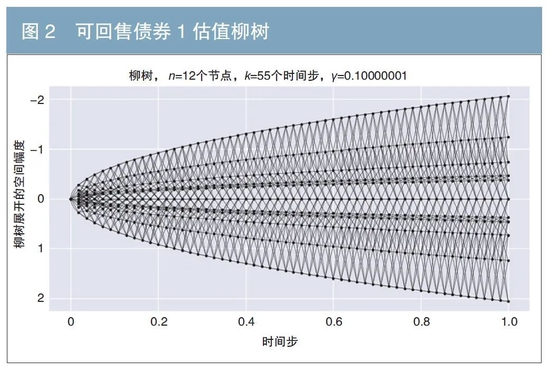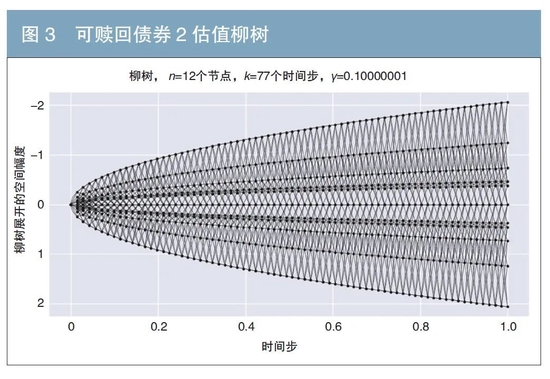 本文将借鉴ALGO的思路,基于柳树模型方法本身,采取平行建模的方式,对含有赎回权或回售权的债券进行估值建模。主要考虑在于:含权债内嵌期权具有强路径依赖关系,传统的二叉树或者三叉树数值方法,前期节点过少,误差较大,后期节点又过多,会产生大量冗余计算。而柳树方法可有效避开这一弊端,该方法使用离散的马尔科夫链近似布朗运动,通过选取合适的转移矩阵保证马尔科夫链收敛至布朗运动,柳树从第一个时间步便迅速打开,在后续时间步,整棵树又被限制在正态分布置信度范围内,与二叉树和三叉树相比较而言,理论上具有计算速度更快、更加准确也更加稳定的优点。
