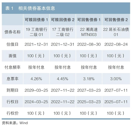 4只债券的基本信息如表1所示,其中2只可回售债券带有发行方调整票面利率权。