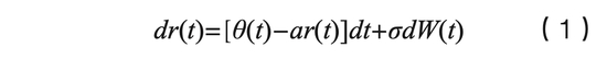 上文中的柳树模型完成了对布朗运动的近似模拟,基于柳树模型,可以对更为复杂的随机过程进行建模。接下来要对短期利率进行建模,目前较为主流的是Hull-White单因子无套利均衡模型(1990),该模型是对Vasicek模型(1977)的拓展,既考虑利率均值回归的特点,又充分吸收当前利率期限结构的信息。