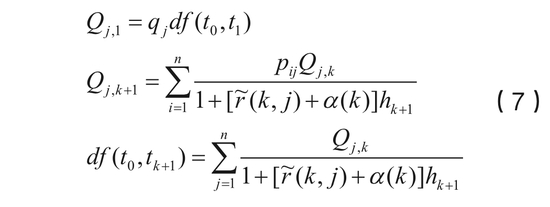 求得α(0)、df (t0, t1)后,根据(7)式中的定义及(6)式在各个时间步的计算结果,通过迭代的方法一步步求出后续每个时间步的α(t),最终经过当前市场利率期限结构校准的利率树各个节点的利率值为