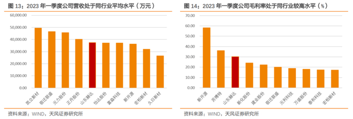 根据山东赫达2023一季报,营业总收入为37501.25万元,在收入相邻的10家同业企业中处于平均水平;其销售毛利率为30.34%,在利润相近的10家同业企业中处于较高水平。此外,根据山东赫达各年年报,2019年以来,公司销售毛利率均在30%以上。
