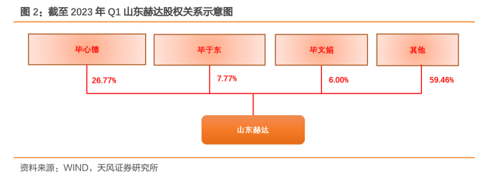 公司成立于1992年12月7日,于2016年8月26日在主板上市。根据公司2023年一季报,公司前三大股东毕心德、毕于东、毕文娟分别持有26.77%、7.77%和6.00%的股份。其中,毕心德与其儿子毕于东、女儿毕文娟作为一致行动人合计持有公司40.54%的股份,三人为公司的共同实际控制人。