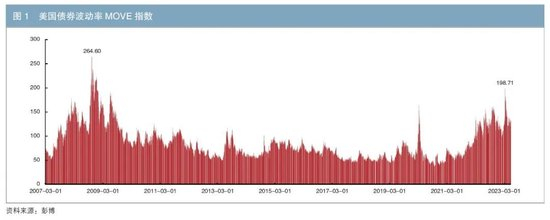 美欧银行业危机使得美债需求发生改变。美欧银行业危机导致各国央行快速减持美国债券。随着美欧银行业危机的持续蔓延,全球美元需求激增,各国央行快速减持美债进行套现。2023年3月22日当周,外国投资者持有的美国国债减少760亿美元,降至2.86万亿美元,是自2014年3月以来的最大单周降幅。同时,美债“安全天堂”属性弱化,吸引力下降。在美国硅谷银行倒闭与瑞信银行危机发酵后,美债波动率升至历史高位。2023年3月15日,美国债券市场波动率指数达198.71,仅次于2008年全球金融危机期间的数值(见图1)。美债市场的过度波动导致美元债券融资受阻,叠加美国可能存在的债务危机,美债作为“安全天堂”的避险属性受到质疑,国际投资者纷纷将资金转向其他市场以抵御危机。
