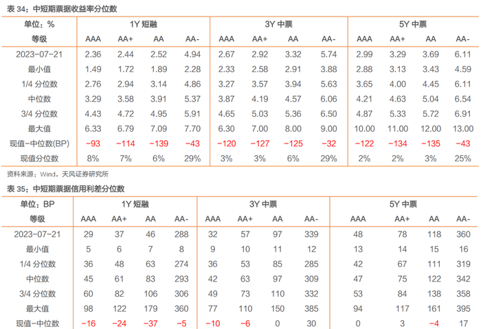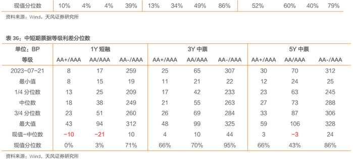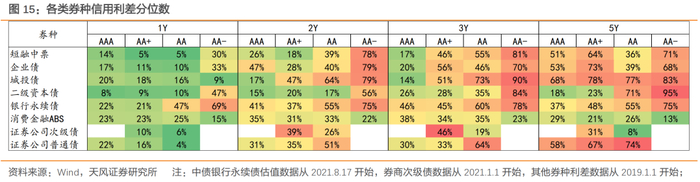 目前AA+次级债的历史分位数稍高,但绝对收益率不高;AA次级债的历史分位数较低,信用下沉策略有所体现;而低等级普通债(如隐含评级AA)的收益率稍高。