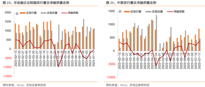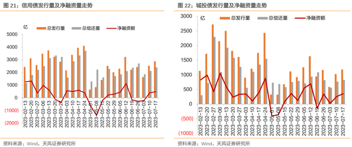 本周非金融企业短融、中票、企业债和公司债合计发行约2884.26亿元,总发行量较上周上升,偿还规模约2397.58亿元,净融资额约486.69亿元;其中,城投债(Wind分类)发行1184.19亿元,偿还规模约827.36亿元,净融资额约356.84亿元;产业债发行2321.33亿元,偿还规模约2234.48亿元,净融资额约86.85亿元。