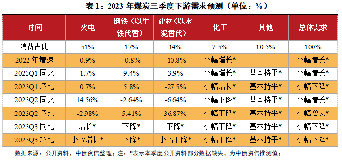三季度,进入夏季用电高峰,多地气温创历史新高,居民耗电预计将环比增长,气象部门预计今年夏季(6~8月)西南地区东部及华中中部降水偏少,湖北大部、湖南北部、重庆东部、四川东北部等地降水偏少2~5成,可能出现区域性气象干旱,降水偏少将推升火电需求,综合考虑上述因素预计火电发电量小幅增长;在地产需求仍未显著回暖背景下,对钢铁和建材需求仍形成一定拖累,钢铁产量预计将有所下滑;基建实物工作量受到资金到位情况影响,水泥产量预计小幅下降;整体看,钢铁和建材需求将拖累三季度煤炭需求边际小幅下降。