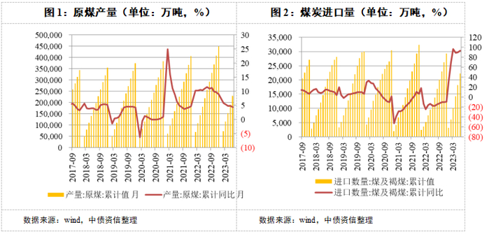 2023年二季度,全社会用电量为21,873亿千瓦时,同比/环比+6.42%/+3.16%,其中,一产、二产、三产和居民用电量分别同比+15.13%/+4.59%/+16.18%/+2.89%,环比+17.29%/+7.50/+6.47%/-19.01%,2季度水电发电量2,469亿千瓦时,同比-31.73%/环比+21.33%,气温逐渐回暖,居民用电大幅下降,叠加来水改善,火电发电量环比下滑2.98%;生铁和水泥产量受季节性因素影响环比有所增长,但同比均转为下滑态势;整体看,居民用电大幅下降拖累火电需求,季节性因素支撑钢铁、建材产量用煤需求边际小幅增长。