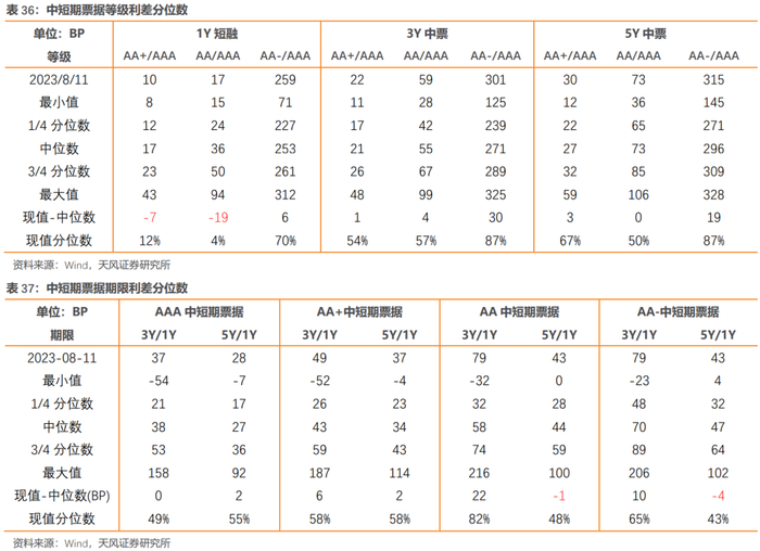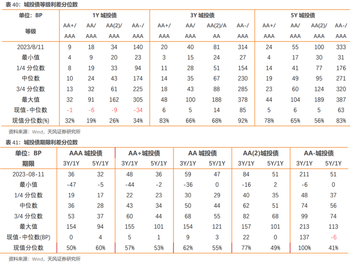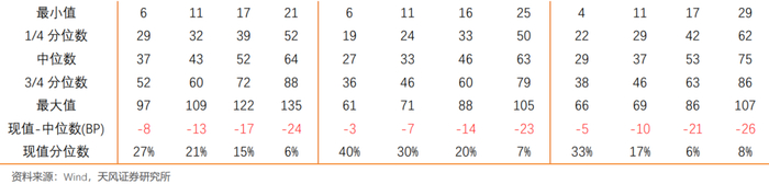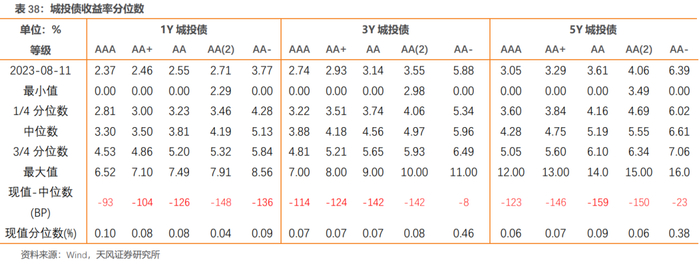 从绝对空间来看,以津城建为例,当前,其收益率相比2022年低点,1年以内的债券仍有150bp以上空间,即使考虑到资金面环境差异,回落的空间也还是有的。