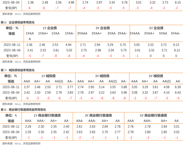 二级市场上,津城建短久期城投债收益率大幅下行。8月4日-11日一周时间内,津城建剩余期限0.1~0.5年的债券收益率下行51bp,剩余期限0.5-1年的债券收益率下行26bp,期限更长的债券收益率普遍下行幅度也在5bp左右。随着市场情绪的大幅好转,二级寻券难度大幅提高。